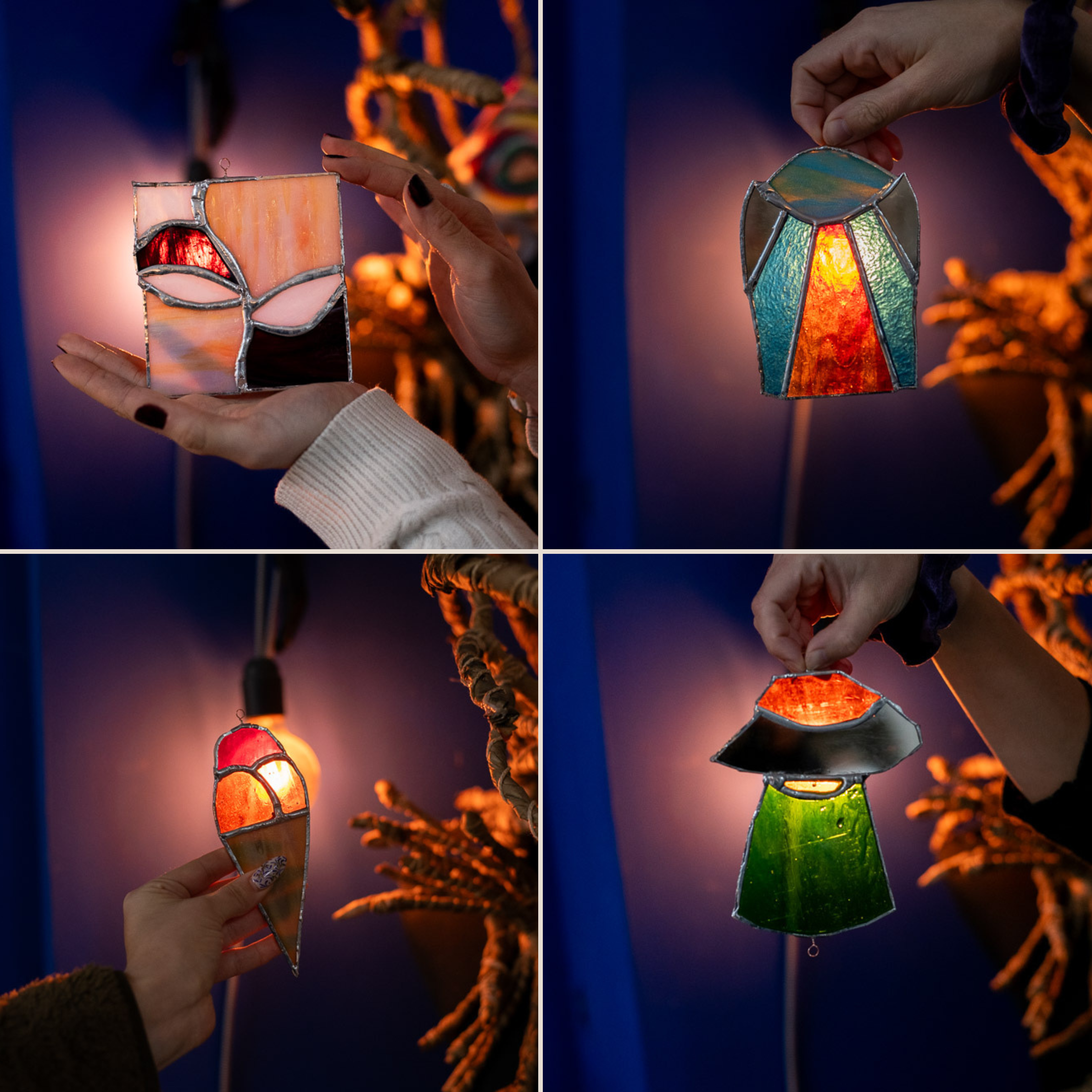 During the Stained Glass for Beginners Workshop, you’ll learn how to make your own stained glass creation from start to finish. You’ll choose the glass and colours, cut them out, grind, copper foil and solder.